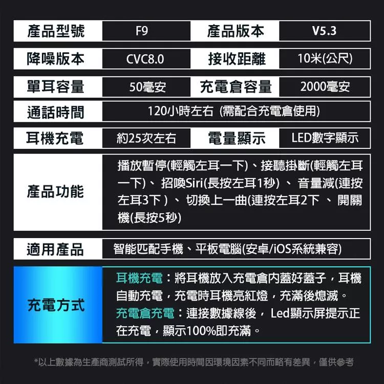全新升級 F9 TWS 藍牙5.3真無線耳機,結合高質感外型與實用功能,帶來前所未有的聆聽體驗!